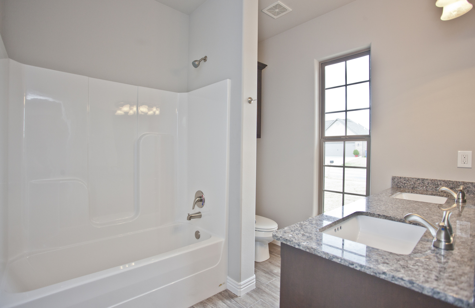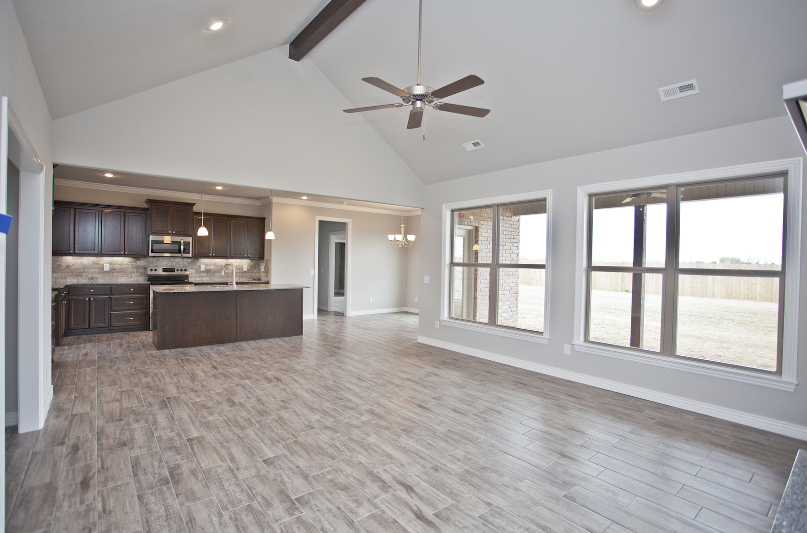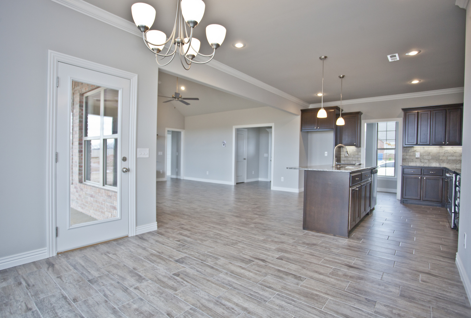 Beautiful home in Pea Ridge. 3 bedroom 2 bath home with split floor plan. Wood style tile flooring through main living area, carpet in bedrooms, granite counters in kitchen and baths, gas fire place in living room, fenced back yard with covered patio.