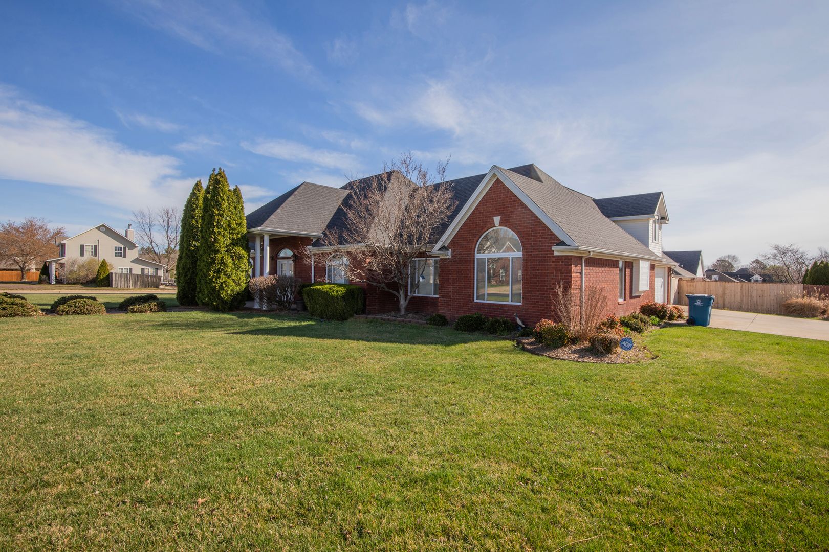 The Orchards Subdivision!!! Great 4 bedroom 3 bath home just minutes from Bike trails, and schools. Living room has gas fire place, crown molding, double french doors to back yard and new wood floors that continue into the large dining area. Dining area opens into kitchen that features granite counters, stainless appliances and includes refrigerator and over range microwave. Master suite includes double sinks, separate shower and large soaking tub and large walk in closet. 3 bedrooms on main level and 1 additional bed and bath upstairs. Large covered patio area, fenced yard and storage building.