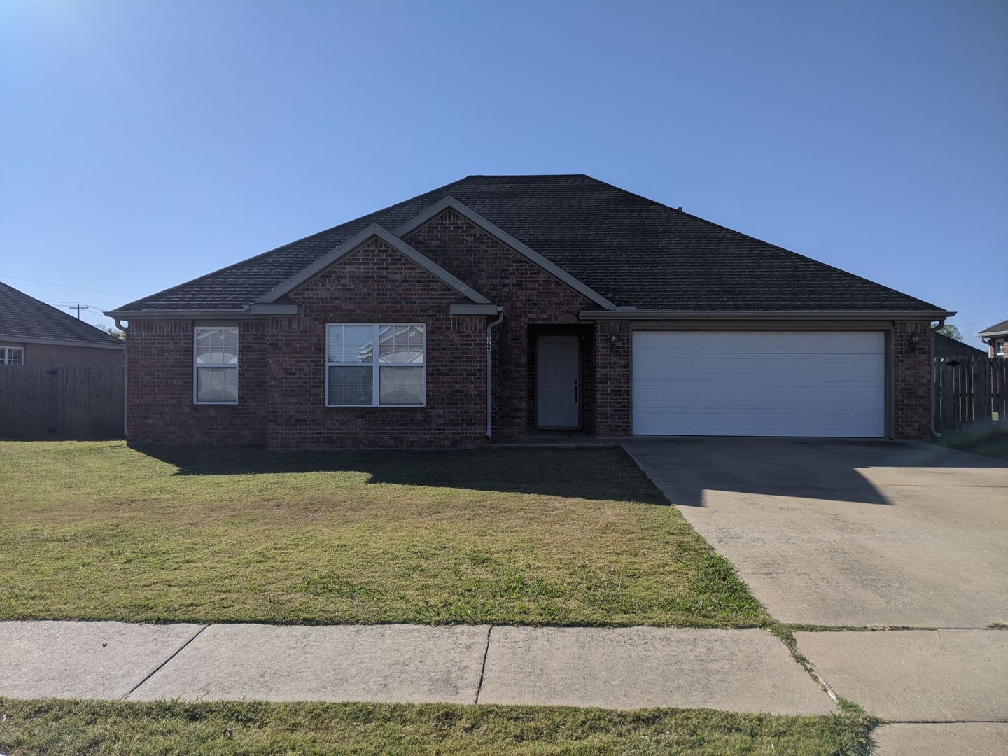 Great 3 bedroom 2 bath home in Centerton. Living room has gas fireplace. Open eat in kitchen, refrigerator included. Primary suite has bath has double sinks and separate jetted tub and shower, and double closets. Large fenced yard.